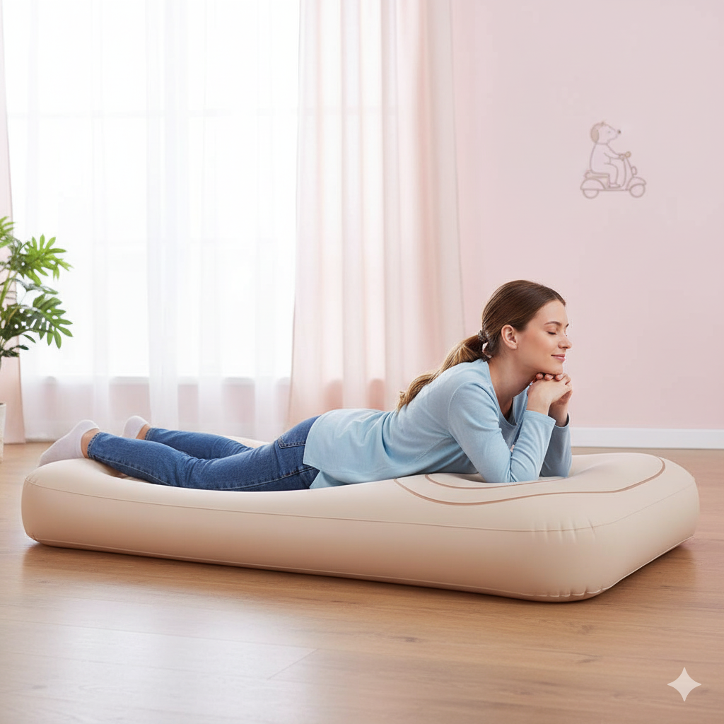 The Tummy Mattress helps you rest in a balanced, pressure-free posture that keeps blood circulating smoothly throughout your body. With dedicated spaces for your belly, breasts, and arms, it’s designed to ease tension, reduce inflammation, and leave you feeling light, supported, and deeply relaxed.